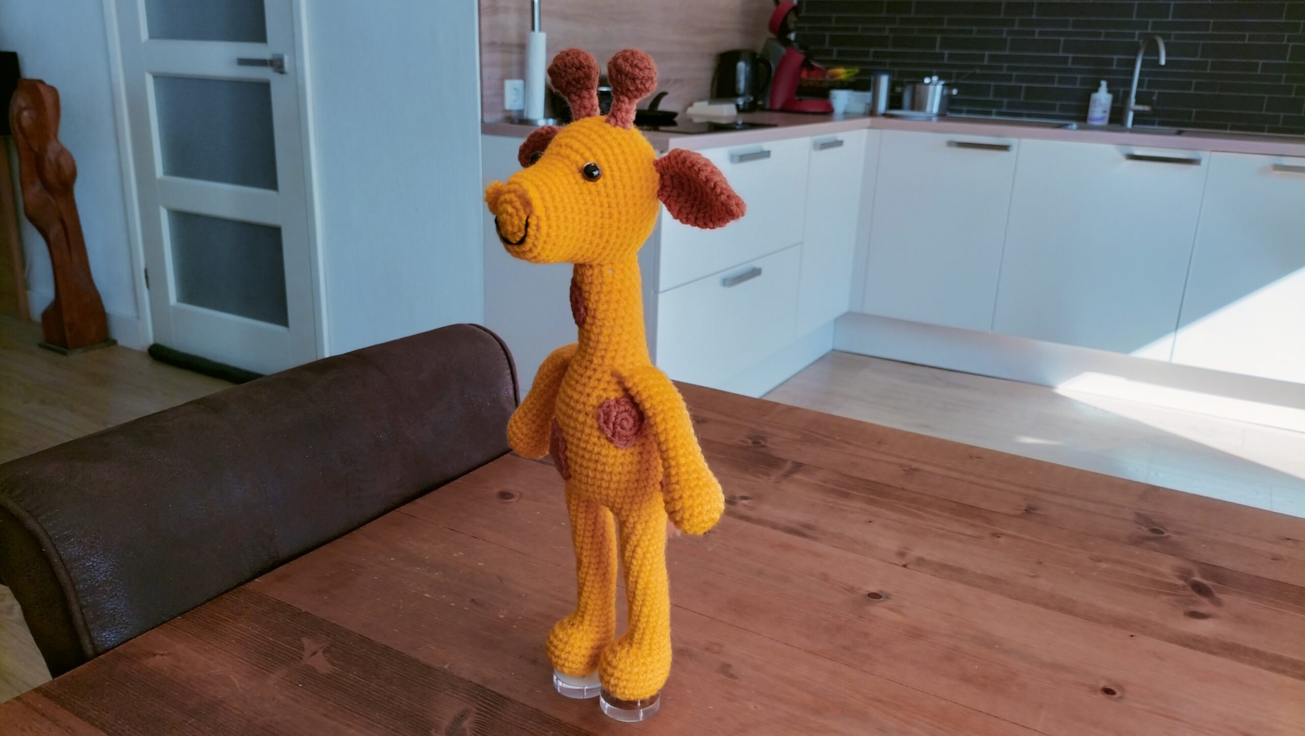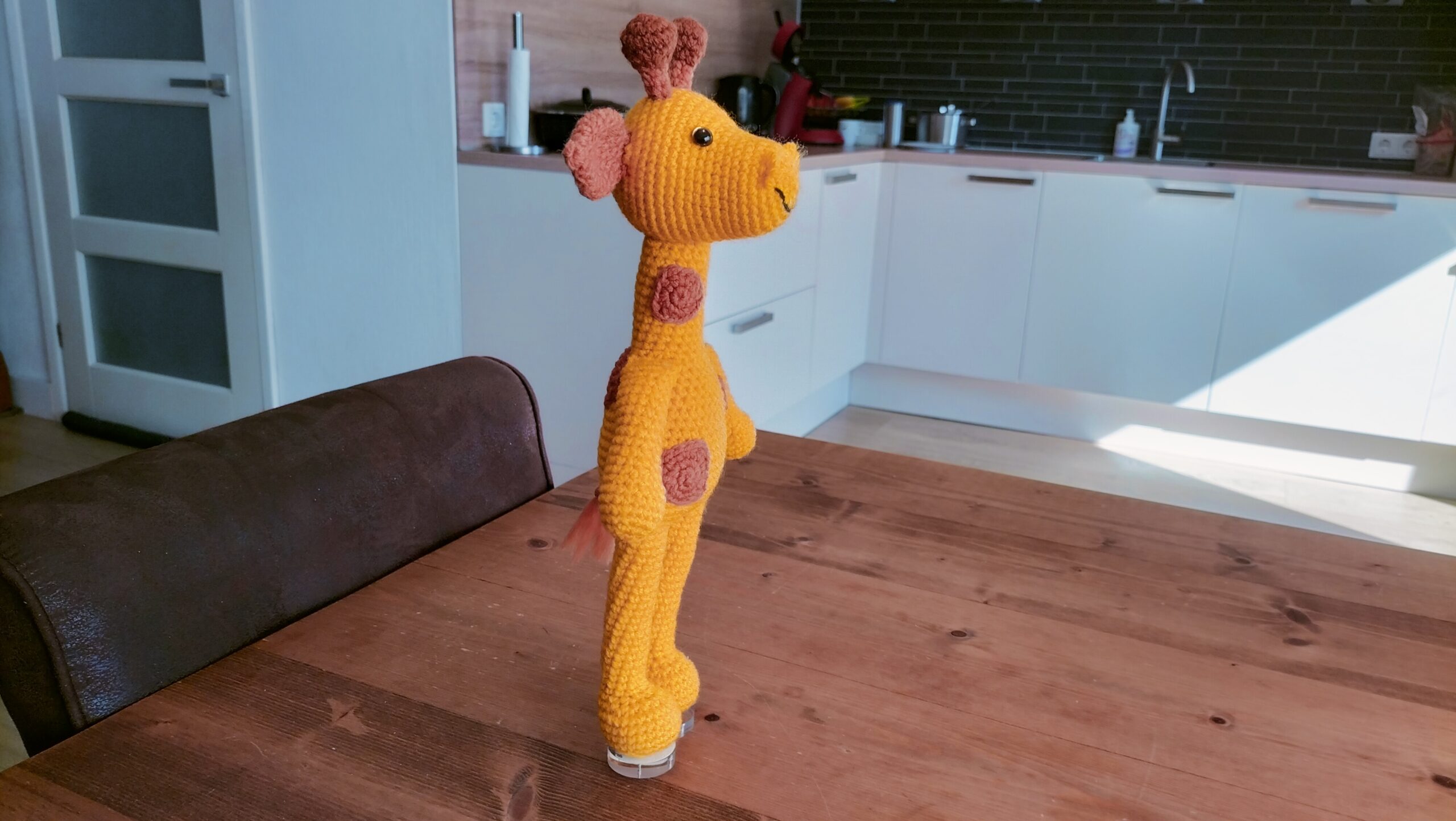 Knuffel-giraf. Safety ogen van binnen verlijmd.